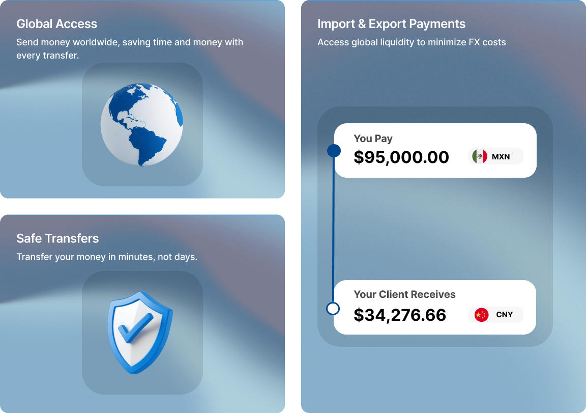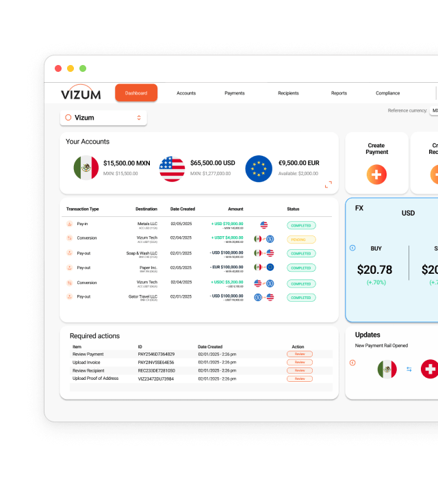 Accelerate cross-border payments, minimize FX costs, and simplify collections and payouts globally.